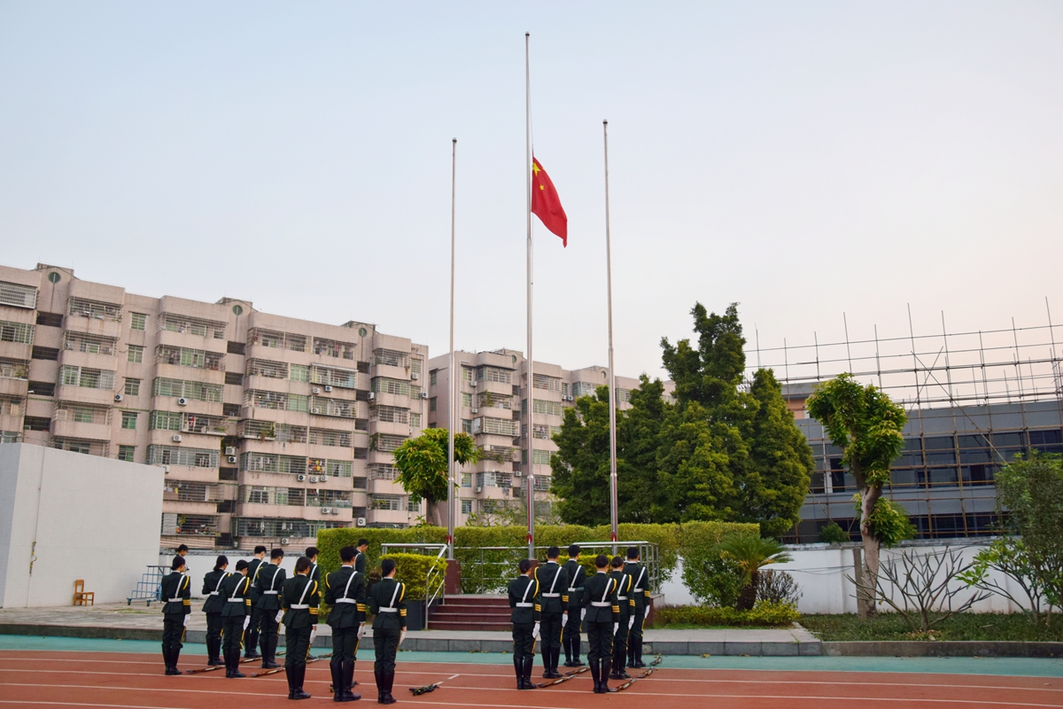12月13日,第八个南京大屠杀死难者国家公祭日当天,我校在东校区、白云校区举行庄严的默哀悼念仪式,悼念被侵华日军在南京血腥屠杀的30余万同胞,缅怀所有惨遭日本侵略者杀戮的死难同胞,缅怀为中国人民抗日战争胜利献出生命的革命先烈和民族英雄。