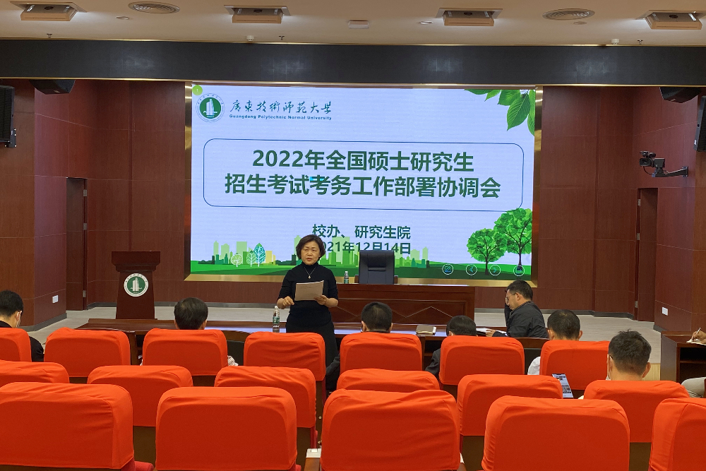 12月14日,学校在东校区一教208召开2022年硕士研究生招生考试考点考务工作协调会,对我校考点考务各项工作进行了任务分解和安排部署。考点主考、校长戴青云出席会议并讲话,防疫办、党办、校办、研究生院、安全保卫处、网络信息中心、后勤处、教务处、财务处、团委负责人以及研究生招生办公室全体人员参加了会议。