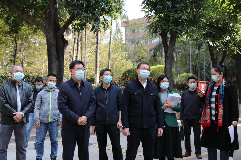 2月26日,天河区委副书记、区长陈建荣,天河区委常委、常务副区长黄凯旋,天河区副区长段希一行在天河区政府办公室、区教育局、区卫健委等部门负责人的陪同下莅临我校东校区督导检查疫情防控工作。学校党委书记凌靖波,副校长苏晖和相关部门负责人陪同督查。