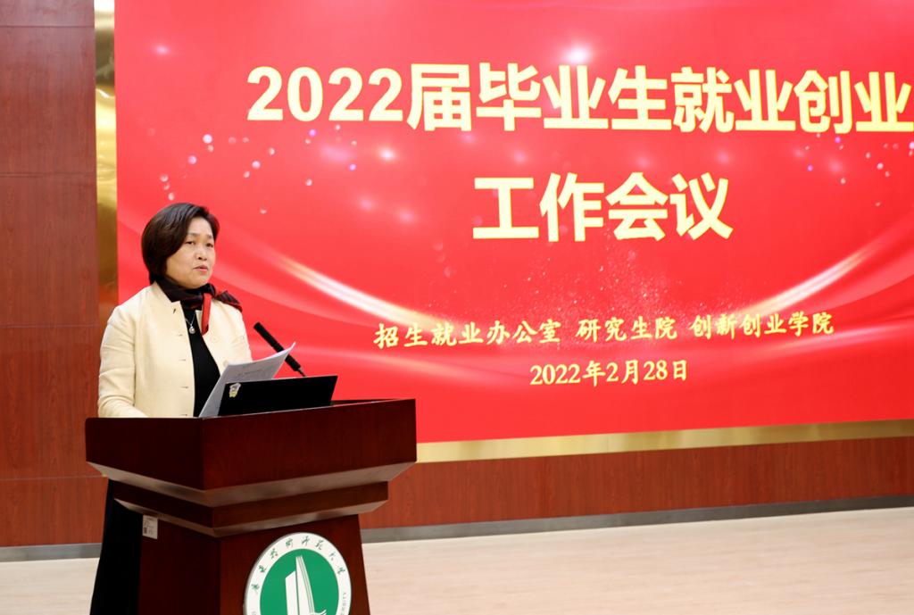 戴青云充分肯定了我校2021年就业创业工作所取得的成效,她指出,在学校党委的正确领导下,在各单位各部门的通力合作下,在全体师生的共同努力下,圆满完成了2021届毕业生就业创业工作任务。