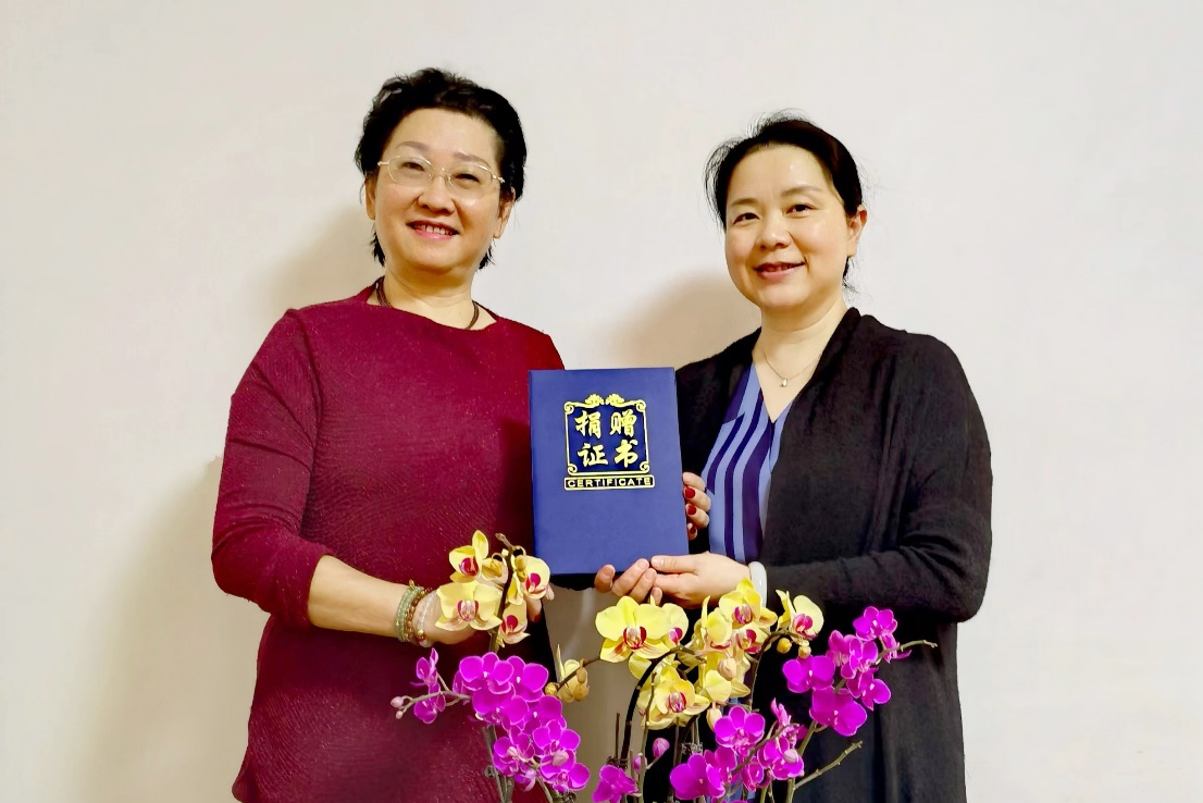 李月也曾担任广东技术师范大学党委副书记、纪委书记,她对我校怀有深厚的感情,十分关心学校青年学生的成长。图书馆党总支书记谢蔚代表图书馆接收捐赠图书,并向李月颁发捐赠证书。谢蔚表示图书馆将珍视这批珍贵的图书,让其继续在学术研究、艺术创作与人才培养中发挥重要的作用。