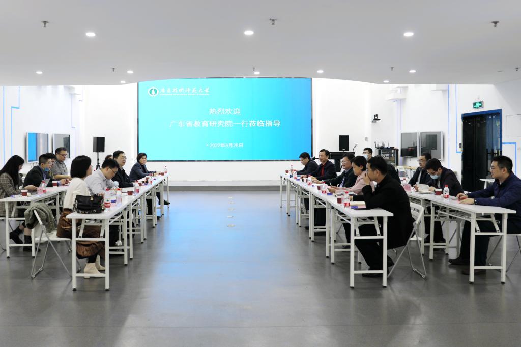 3月25日,广东省教育研究院副院长、广东省重点领域研发计划项目“5G+智慧教育”重大专项项目主持人李海东率项目组成员深入我校开展调研交流。学校党委书记凌靖波、校长戴青云以及有关职能部门主要负责同志参加调研座谈。