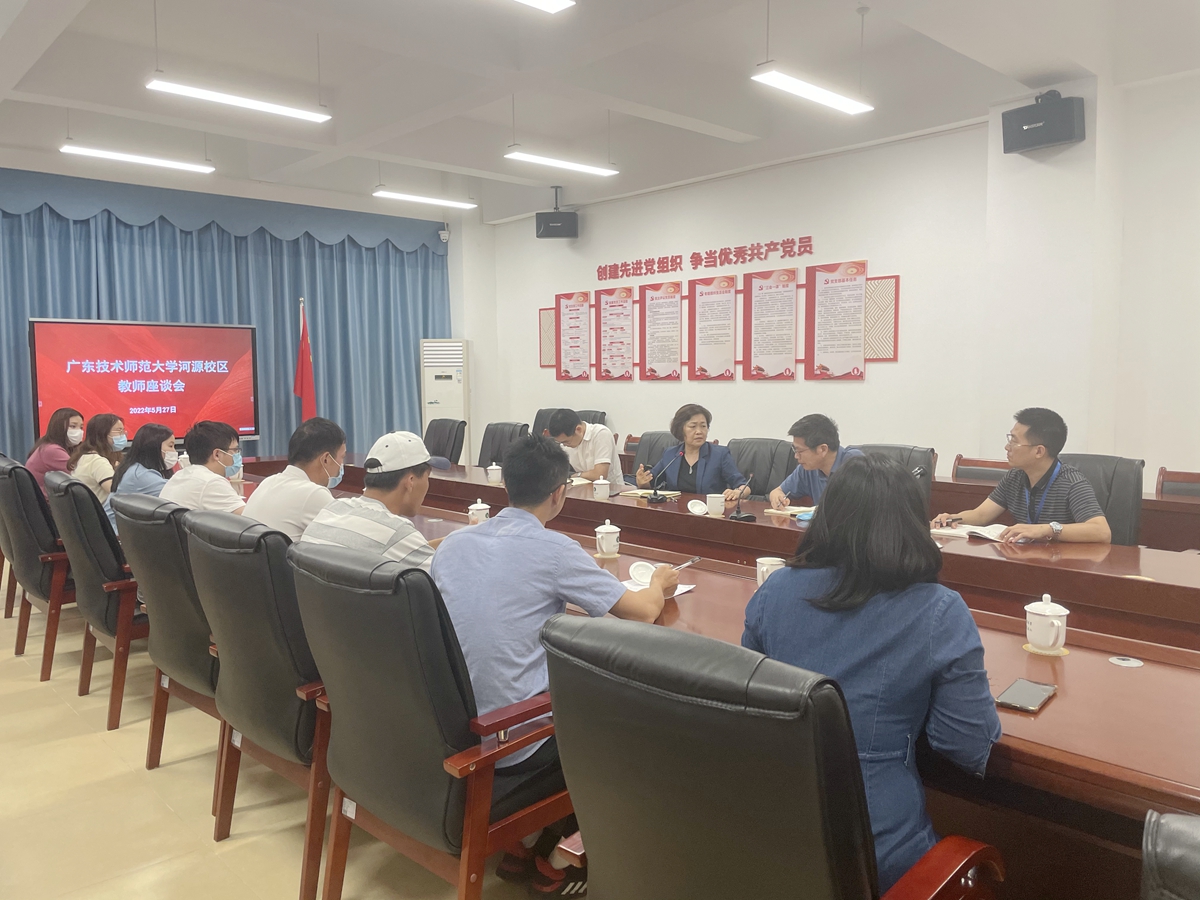 5月27日,河源校区教师代表座谈会在河源校区厚德楼418会议室举行,学校校长戴青云,副校长苏晖出席座谈会,与校区各二级教学单位教师代表进行座谈。校办、河源校区管委会相关负责人参加座谈。座谈会由戴青云主持。