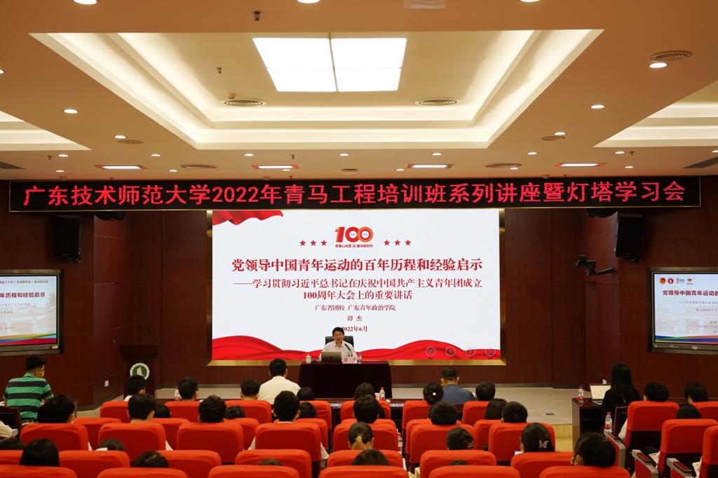 为深入学习贯彻习近平总书记在庆祝中国共产主义青年团成立100周年大会上的重要讲话精神,开展好我校青年马克思主义者的培养工程,增强新时代青年的使命与担当,6月16日下午,我校邀请广东省团校(广东青年政治学院)党委书记谭杰同志在东校区为学校“青马工程”学员、团员青年讲授题为《党领导中国青年运动的百年历程和经验启示——学习贯彻习近平总书记在庆祝中国共产主义青年团成立100周年大会上的重要讲话精神》的思政课。校院团委专职团干部、校院两级“青马工程”学员参加了学习。