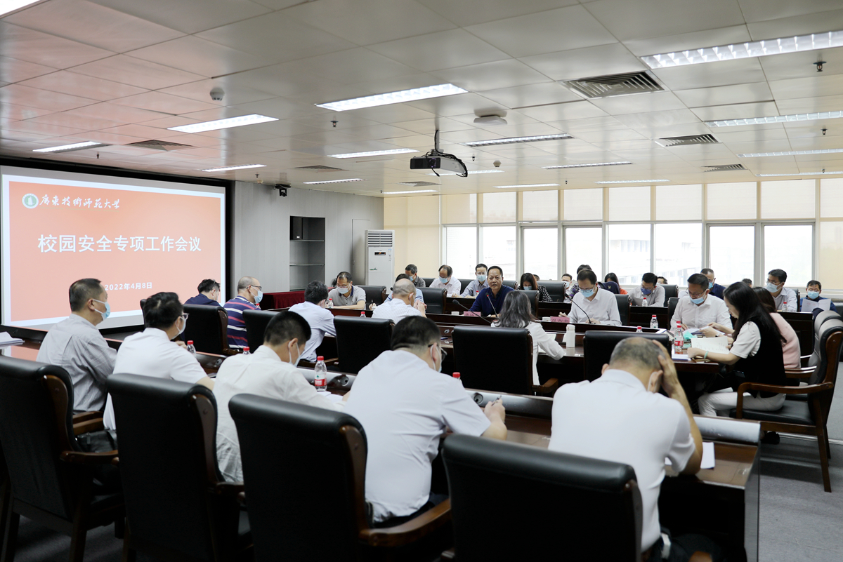 黄秋文受学校党委书记凌靖波委托作了讲话,对学校2022年校园安全工作提出了四点要求:一是全校上下要深入学习贯彻习近平总书记关于安全生产的重要论述和重要指示批示精神,进一步提高政治站位,牢固树立“人民至上、生命至上”的理念,时刻紧绷安全工作这根“弦”,把思想和行动统一到总书记、党中央决策和学校党委部署上来,进一步细化本单位安全工作举措,持续用力、久久为功,统筹做好学校政治安全、疫情防控和校园安全工作等各项安全工作;二是各单位要深刻认识当前疫情防控的复杂性、艰巨性、反复性,坚持“外防输入、内防反弹”总策略和“动态清零”总方针,严把校门入口关,做好师生分级分类健康管理,强化疫情防控期间师生思想政治教育与心理疏导工作,加强人文关怀,切实保障师生生命安全,同时加强健康观察室、防疫物资等力量储备和开展疫情防控应急演练,进一步提升应急处突水平;三是各单位要对自己所管辖范围的政治安全、网络安全、疫情防控、交通、消防、危险化学品、治安、食品卫生、防汛减灾等开展横向到边、纵向到底、不留死角的隐患大排查,对排查发现的安全隐患,建立台账、制定整改措施和整改期限,限期整改,要毫不放松抓好安全工作,坚决防止校园安全事故发生,为迎接党的二十大胜利召开营造平安、和谐、有序的校园环境;四是要加强组织领导,压实安全工作主体责任,严格落实“党政同责”的要求,坚持齐抓共管、协同创新,强化值班值守和督导检查,以时不我待的精神不折不扣推进安全工作落细落实。