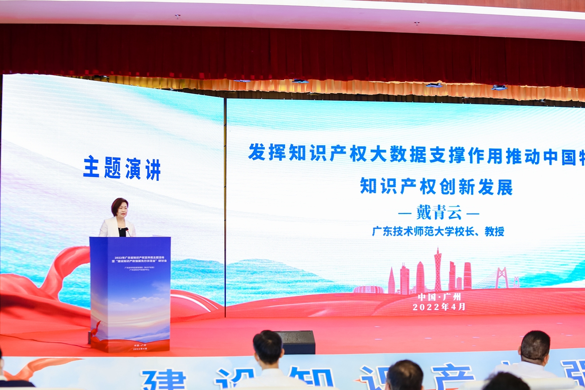 在研讨会上,戴青云以“发挥知识产权大数据支撑作用,推动中国特色知识产权创新发展”为题发表演讲。她强调,在数字经济加速发展的时代背景下,知识产权信息化、智能化建设迫在眉睫,如何利用人工智能技术提升知识产权创造、保护、运用、管理和服务全链条水平,更好地发挥知识产权对广东省经济社会发展的支撑作用,是相关科研团队要重点关注和研究的问题。她呼吁,政校企等各方面应紧密围绕建设知识产权强国先行示范省的需求,充分发挥自身优势,全面加强知识产权人才队伍建设,细化实施重点领域知识产权专项人才培养计划,加大复合型知识产权高端人才培养力度,为广东高质量发展提供坚实的知识产权人才支撑。