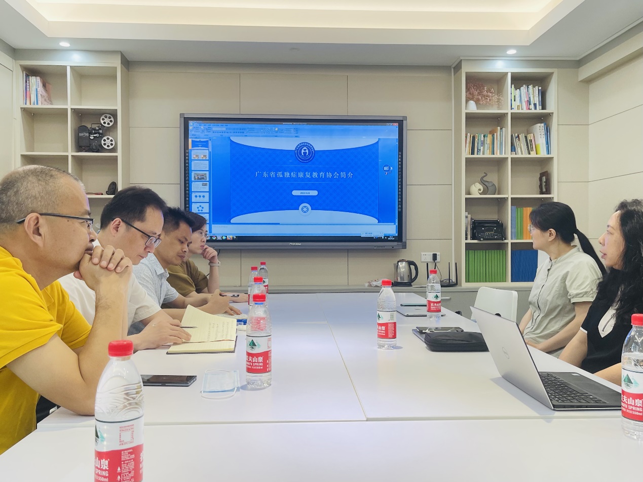 广东省孤独症康复教育协会会长樊越波、副会长王穗萍、秘书长何昕劼等对孙燕青一行的来访表示热烈欢迎,樊越波向大家介绍了广东省孤独症康复教育协会的基本情况,并围绕着孤独症康复行业对人才的需求,希望与学校在人才培养、学生就业、继续教育、社会培训等方面开展合作。