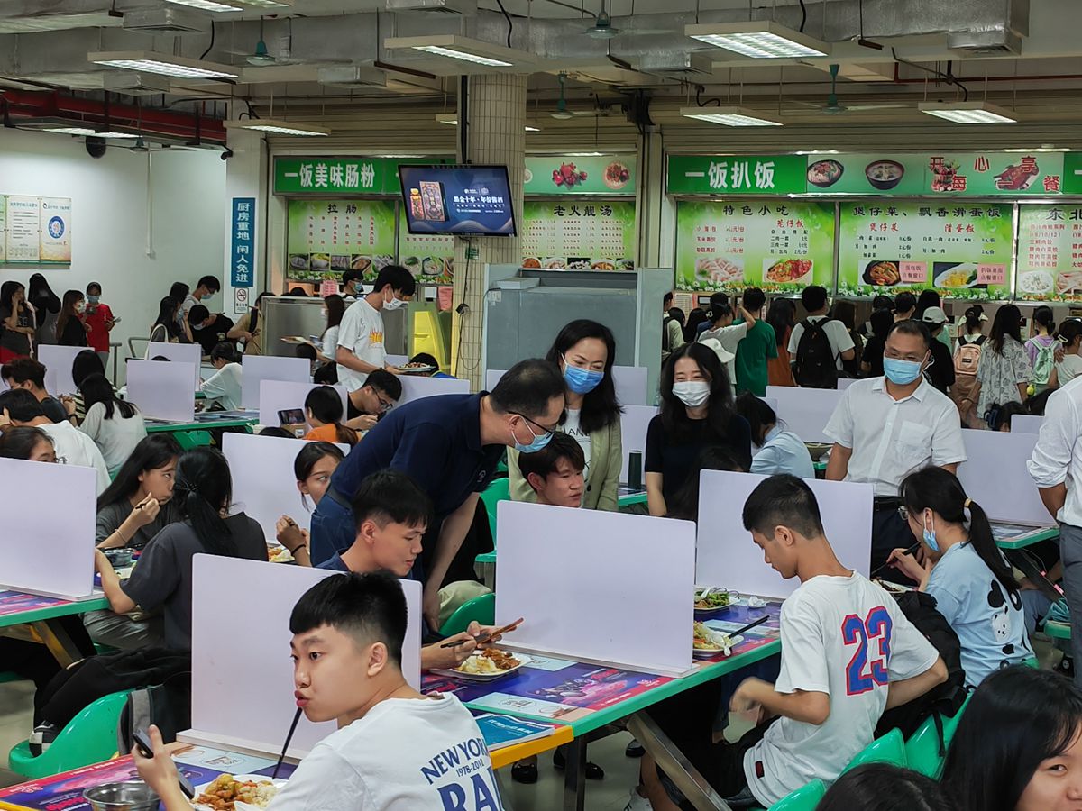 检查饭堂期间,孙燕青详细检查了饭菜供应、食品安全等情况,并利用就餐时间向学生了解饭菜价格、饭菜质量、同学们对食堂饭菜的评价等。学生们表示满意,同时也提出了相关建议。孙燕青感谢同学们对学校工作的关心和支持。各学院座谈环节,机电学院、法学与知识产权学院等相关负责人详细汇报了学生思想动态、毕业生就业和学生心理健康等工作情况。孙燕青对各学院在学生教育管理工作所取得的成效给予充分肯定,并作出相关指导建议。