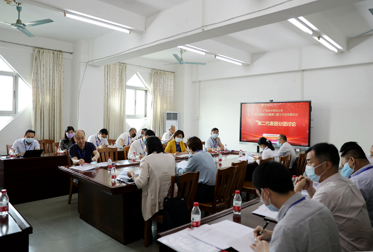 在分团讨论会上,代表就《广东技术师范大学教育教学工作量计算办法(2022年修订)(审议稿)》《广东技术师范大学重大教育教学成果及专项奖励办法(2022年修订)(审议稿)》《广东技术师范大学2022-2025年聘期岗位设置与人员聘用实施方案(审议稿)》进行了深入讨论并提出了宝贵意见建议。
