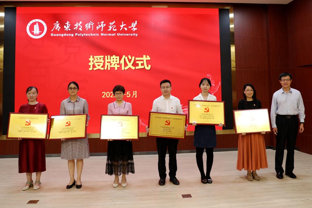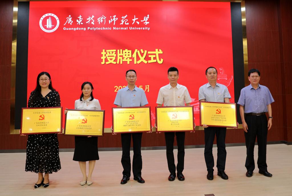 美术学院党委、计算机科学学院党委、电子与信息学院网络与通信教工党支部、法学与知识产权学院创新创业党支部、民族学院教工党支部、自动化学院测控技术与仪器教工党支部、美术学院艺心党支部等省级以上“双创”单位负责人分别就工作经验、建设成效等进行了经验分享。凌靖波、贺勇分别为 “全国党建工作样板支部”“全省党建工作标杆院系”“全省党建工作样板支部”及广东省高校“双带头人”教师党支部书记工作室进行授牌。