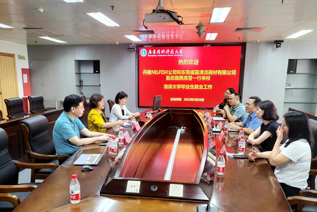 过炜华介绍了力奇集团在商用清洁设备、真空吸尘器、机器人等方面的发展情况,表示希望与我校进一步加强在学生就业、实验室共建等领域的合作,推动校企合作深入发展。机电学院负责人介绍了学院的学科专业建设、科研、人才培养、师资队伍、学生就业等基本情况。双方就开展实习就业、产教融合等问题进行了深入交流。