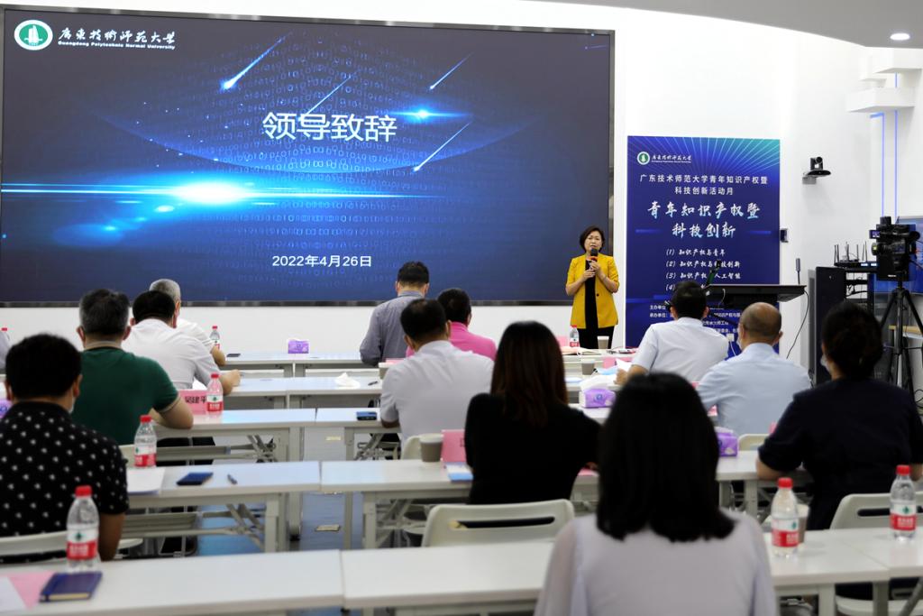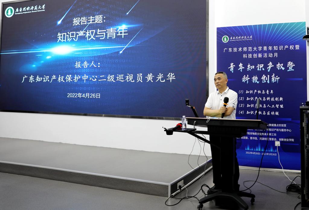 4月26日,是第二十二个世界知识产权日,当日下午,学校“青年知识产权暨科技创新活动月”主题活动启动会在东校区工业中心106室拉开帷幕。广东省知识产权保护中心二级巡视员黄光华,学校校长、广东省知识产权大数据重点实验室主任戴青云,简链科技(广东)有限公司董事长王国强,广东高航知识产权运营有限公司副总裁徐静杰应邀出席活动并做专题报告。科研处、法知学院、美术学院、图书馆、广东省知识产权大数据重点实验室等相关单位负责人参加启动会。本场活动采用线上线下同步直播形式进行,吸引了1200余名青年大学生关注。