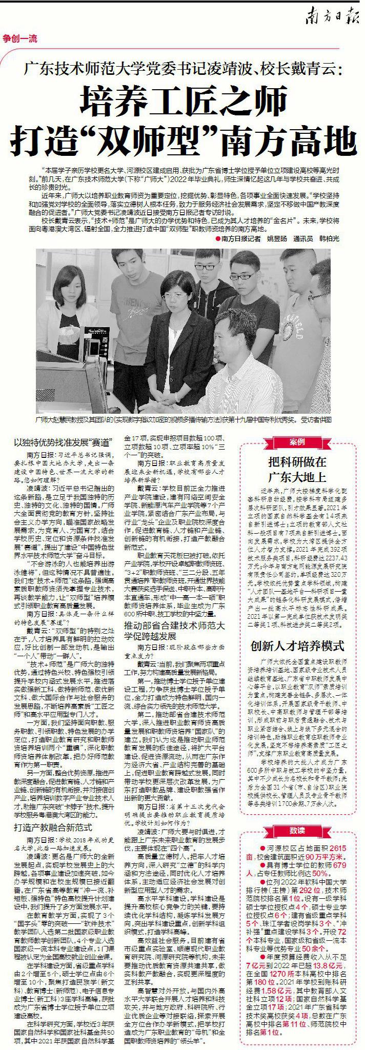 南方日报:职业教育高质量发展迎来全新机遇,学校有哪些人才培养新举措?
