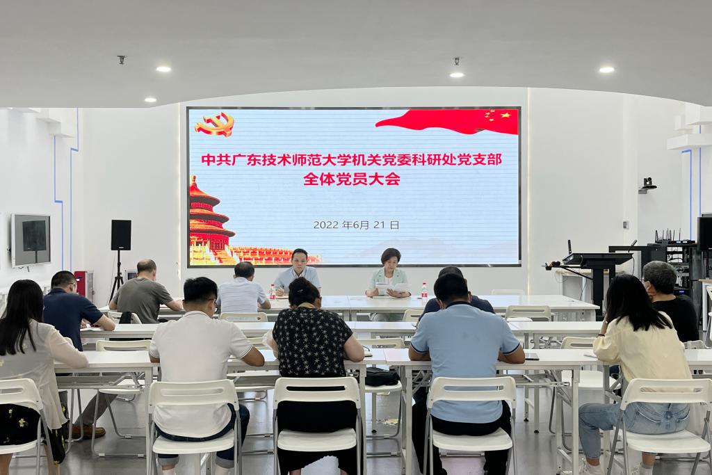 6月21日,科研处党支部召开专题会议,学习贯彻中国共产党广东省第十三次党代会精神,广东省第十三次党代会代表、学校党委副书记、校长戴青云同志以普通党员身份参会。