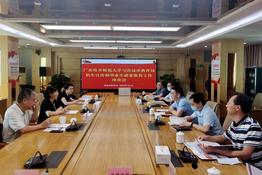 许玲率队赴清远市教育局,与清远市教育局四级调研员赵亮、教育局招生及就业工作的负责人以及清远市第一中学、华侨中学等6所中学的校长进行了深入交流。许玲向与会人员介绍了学校发展情况、近年在清远地区的招生情况以及清远生源的就业情况等,希望双方接下来进一步加强毕业生就业、招生等方面的合作。赵亮介绍了清远地区近年生源情况,并对我校人才培养质量给予高度肯定,随后双方就招生就业宣传、基础教育以及共建就业实习基地等方面进行了深入探讨。