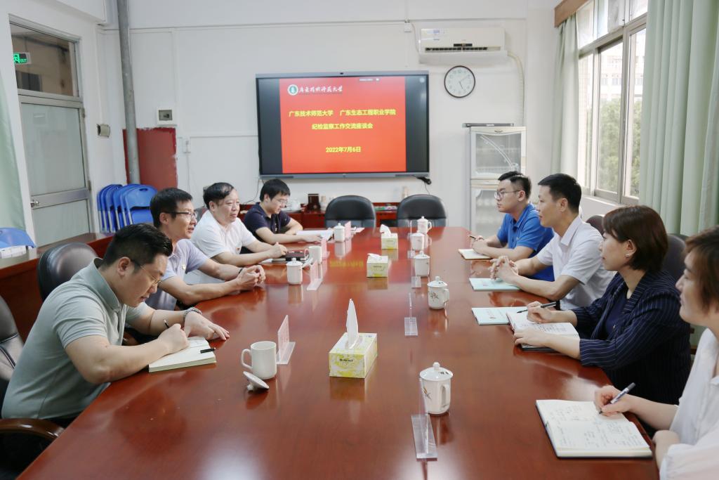 广东生态工程职业学院纪委对我校纪检监察工作的做法和经验表示赞赏,认为我校纪检监察工作在职能发挥、规范化建设、校内巡察等方面值得学习借鉴。双方均表示,学校党委的重视和支持,是纪委更好履行监督执纪问责职责的重要保证,希望今后进一步加强学习交流,互学互鉴,努力推动高校纪检监察工作高质量发展。