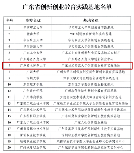 日前,《广东省教育厅关于公布广东省创新创业教育实践基地名单的通知》下发,我校获评为广东省创新创业教育实践基地,本次全省共遴选了20个省级实践基地,其中省属本科高校5个。省级创新创业教育实践基地的评选,是省教育厅落实省人民政府进一步支持大学生创新创业政策的重要举措,是为进一步深化创新创业教育改革,为我省高校创新创业教育实践选树先进典型、发挥示范引领而开展的重要工作。