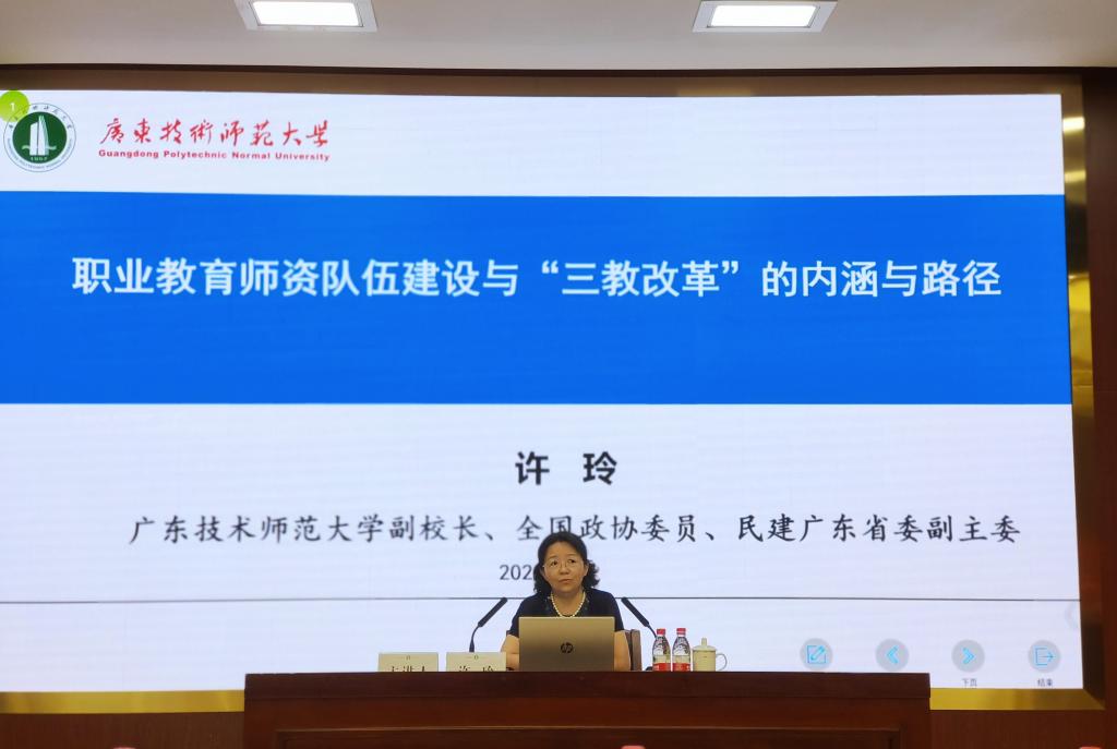 8月7日下午,全国政协委员、民建广东省委副主委、广东技术师范大学副校长许玲教授作了《职业教育师资队伍建设与“三教改革”的内涵与途径》的讲座。许玲从职业教育发展的背景分析、职业教育产教融合人才培养研究、如何成为优秀的职教教师、职业教育“三教改革”的背景与内涵等方面进行解读,帮助学员了解国家职业教育相关政策及现状,介绍了“三教改革”的路径与措施。许玲认为“教师”“教材”“教法”事关职业教育“谁来教”“教什么”“怎么教”,贯穿人才培养全过程,直接关乎“培养什么人、怎样培养人、为谁培养人”这一根本问题,是新时代职业教育发展的重中之重。