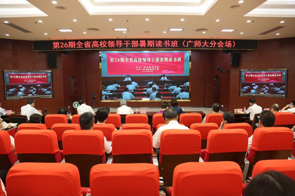 8月20-21日,省委组织部、省委教育工委举办第26期全省高校领导干部暑期读书班。我校在东校区第一教学楼208讲学厅设立分会场,学校领导,华南师范大学、广东南华工商职业学院、广州工商学院、广州华夏职业学院、广州华立科技职业学院、广东岭南职业技术学院、广州理工学院、广州工程技术职业学院和广州铁路职业技术学院等高校领导以及各高校党委组织部、党委宣传部、党委统战部等部门负责人参加读书班学习。