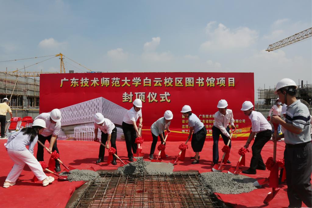 随后,出席仪式的领导共同挥楸铲土,庆祝白云校区图书馆项目顺利封顶。