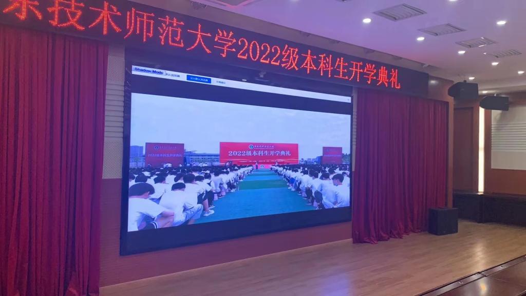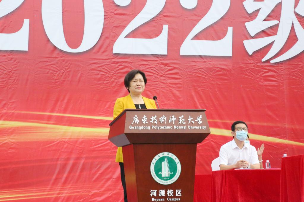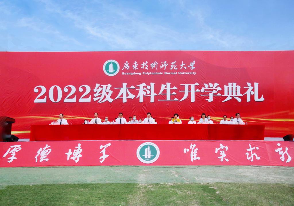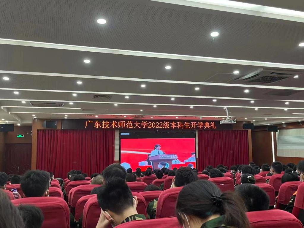 “我是广东技术师范大学2022级学生。我将秉承校训精神,厚德博学,唯实求新。立大志、明大德、成大才、担大任,努力成为堪当民族复兴重任的时代新人!请党放心,强国有我!”在温紫霞同学的领誓下,典礼在全体新生高声诵读入学誓词中结束。