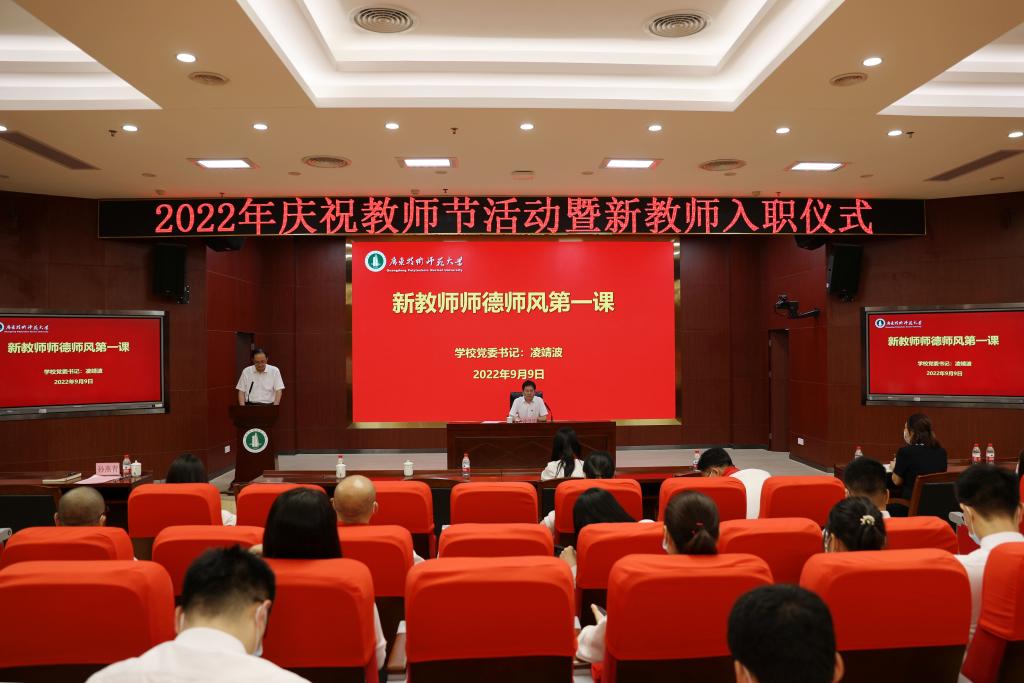 今年9月10日是我国第38个教师节。9月9日下午,在教师节即将到来之际,学校在东校区第一教学楼208讲学厅举行简朴而隆重的2022年庆祝教师节活动暨新教师入职仪式,以展现我校教师爱党爱国、立德树人、自信自强的精神风貌,团结凝聚广大教师以习近平新时代中国特色社会主义思想铸魂育人,担负为党育人、为国育才使命,以实际行动迎接党的二十大胜利召开。