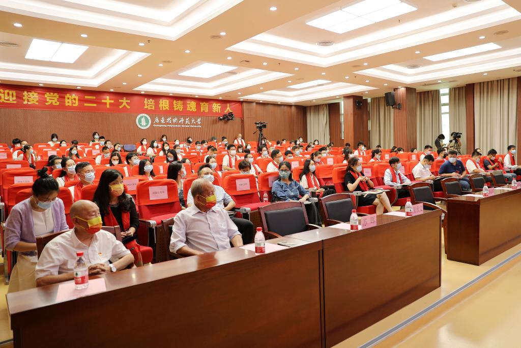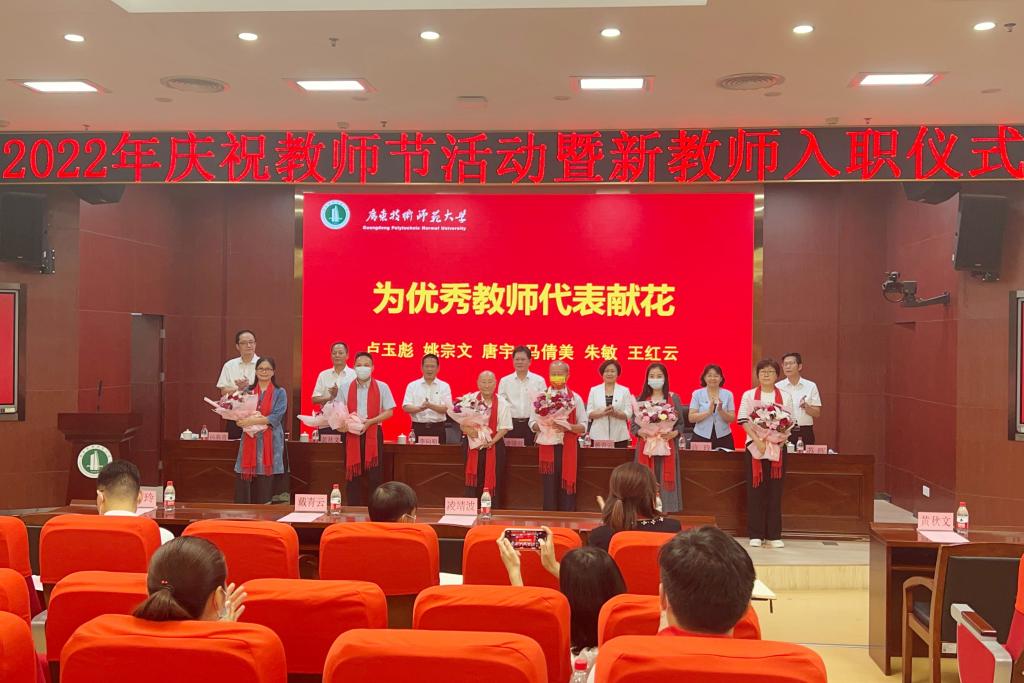 过去的一年来,我校教师在立德树人、培根铸魂的教育战线上奋力拼搏、默默奉献,为学校的发展作出了突出的贡献,也为学校赢得了荣誉。会上,“全国教育系统关心下一代先进工作者”“广东省100名最美老党员”、退休老教师卢玉彪,广东省高校精品党课“优秀党史宣讲员”、离休老干部姚宗文老师,“广东青年五四奖章”获得者、学校科研处唐宇教授,广东省“三八红旗手”、国际教育学院留学生辅导员马倩美老师,三次主动带队援藏支教、谱写民族团结佳话的文学与传媒学院朱敏教授,援疆援藏教师代表、汽车与交通工程学院王红云副教授等作为优秀教师代表上台接受学生敬献鲜花。