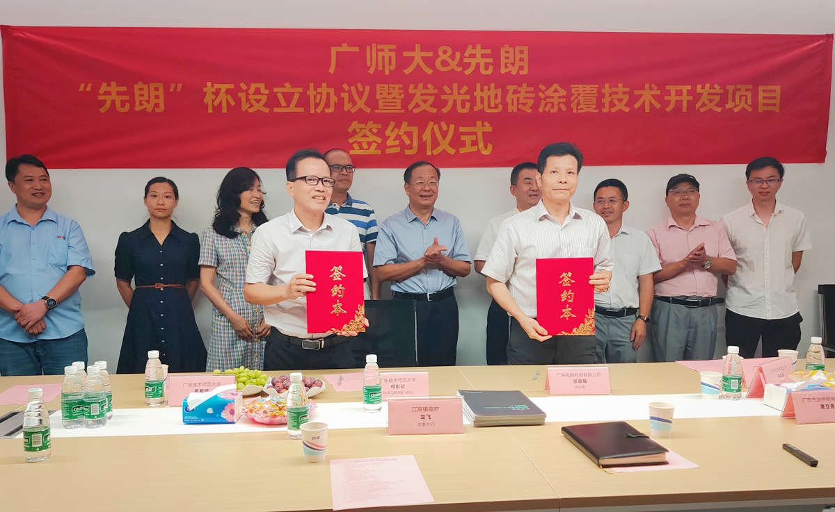 揭牌仪式上,学校与先朗照明就“先朗杯”的设立及“发光地砖涂覆技术联合开发项目”正式签约,并进行了广泛的技术交流与意见交换,进一步深化了双方合作的基础。