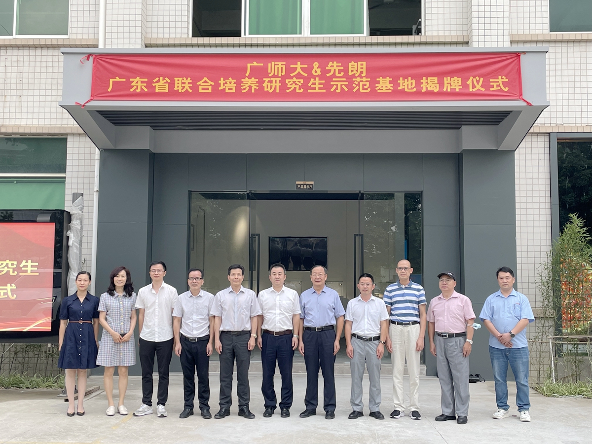 9月8日下午,学校与广东先朗照明有限公司(简称“先朗照明”)共建的“广东省联合培养研究生示范基地”揭牌仪式在先朗公司隆重举行。江高镇党委书记龙飞,学校前副校长冯灿仪,研究生院院长陈泳竹、副院长刘卫东,光电工程学院党委书记罗君辉、院长何影记、基地项目负责人胡广齐,先朗照明总经理张惠强等先朗管理层人员,江高镇商会秘书长刘少珊等嘉宾共同出席了本次揭牌仪式。