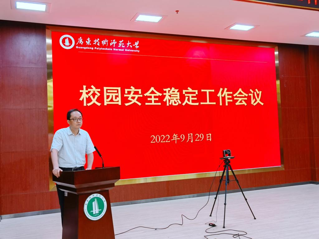 为进一步做好国庆假期校园安全工作,保障全校师生的身体健康和生命安全,9月29日上午,学校在东校区第一教学楼208报告厅召开校园安全稳定工作会议。会议由孙燕青副校长主持,学校维护校园安全工作领导小组全体成员参加,白云校区第一教学楼234会议室特设分会场。