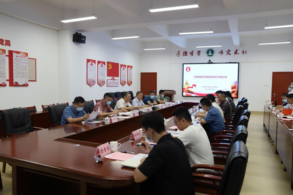 随后,陈贤亮书记一行到达厚德楼418会议室参加座谈会。会上,苏晖副校长首先代表学校对河源市领导莅临河源校区开展调研指导工作表示热烈欢迎,与会人员一同观看了学校的招生宣传片。苏晖副校长在会上介绍了学校校史、河源校区办学现状、学生管理以及未来规划等情况。他指出,河源校区目前是粤东西北各高校分校区中招生规模最大的校区,取得的成绩离不开河源各级党委政府、各部门的高度重视和大力支持,在此表示衷心感谢并致以崇高的敬意。苏晖副校长强调,接下来河源校区将进一步加强与属地各部门的沟通协作,确保校地合作沟通机制高效畅顺,校地共同营造健康、平安、和谐的校园环境。座谈会上,河源校区学生工作负责人还汇报了校区少数民族学生服务和管理工作情况。