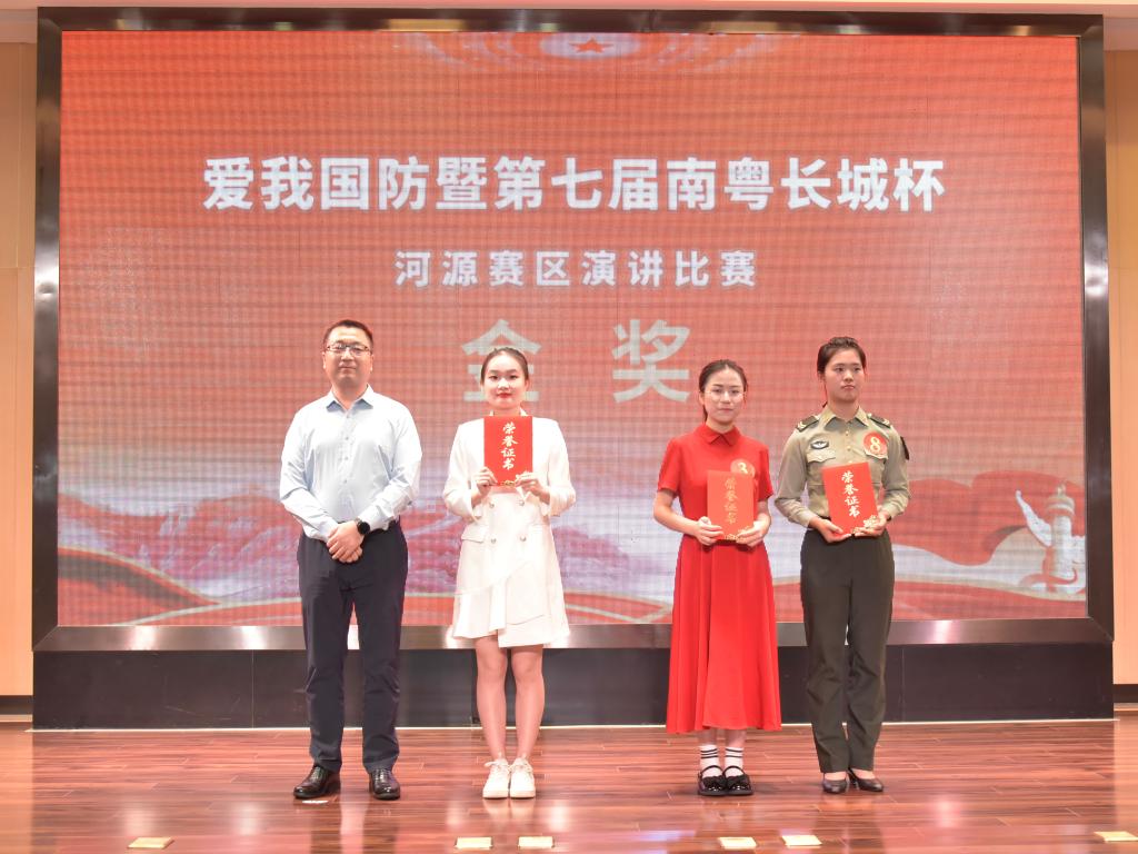 “爱我国防暨第七届南粤长城杯”河源赛区演讲比赛由中共河源市委宣传部、河源市国防教育领导小组办公室、河源军分区政治工作处、河源市教育局、河源市退役军人事务局主办,河源晚报社、河源市图书馆承办,本次比赛分为大学生组、中学生组和军人组,来自河源市的32名选手以“爱我国防”为演讲主题,怀赤诚之心,表达强国之愿、爱国之心。我校河源校区管委会积极动员、精心组织和严格把关,通过多轮筛选推选出5名优秀学生参赛本次,获得了优异的成绩。