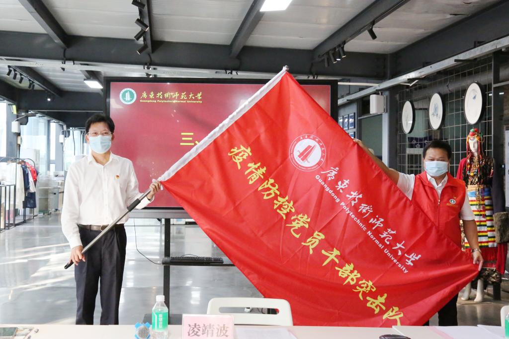 凌靖波强调,这批党员突击队、预备队成员是优中选优,是在急难险重任务中发挥冲锋作用的一支精锐部队。对于承担大量繁重的疫情防控支援工作,他对学校突击队、预备队全体队员提出了三点要求。一是要提高政治站位,以最高标准和最严要求完成各项任务。把疫情防控工作作为当前的头等大事和首要政治任务抓紧抓实抓到位,以对党和人民高度负责的态度,铁肩担道,勇挑重任。让党旗在疫情防控斗争第一线高高飘扬,坚决打赢疫情防控阻击战。二是要强化带头意识,充分发挥党员先锋模范作用。要以“不负时代、广州有我”为目标,积极参与各项志愿服务,时刻以一名共产党员的觉悟和标准要求自己,为党分忧,为民奉献,不怕困难,不计得失。充分发挥党员先锋模范作用,努力争做冲在疫情防控最前线的“排头兵”“先锋队”。三是要强化纪律观念,坚决完成组织交办的各项任务。要服从统一管理安排,一切行动听从指挥,一不怕苦、二不怕累,积极配合驰援点的各项工作,绝不能出现不服从安排的情况。要加强自我防护,全面加强防护知识和技能培训,采取一切必要措施,最大限度做好自身安全防护,确保自身安全。主动与学校保持紧密联系,及时反馈在工作、生活中的问题与困难。他指出,疫情来势汹涌,全体队员舍小家为大家,义无反顾地“逆行”,惟其艰难方显勇毅,惟其笃行方显珍贵,他代表学校党委感谢全体队员为了千千万万广州人民的无私奉献,用实际行动筑起保卫广州人民的坚强壁垒。