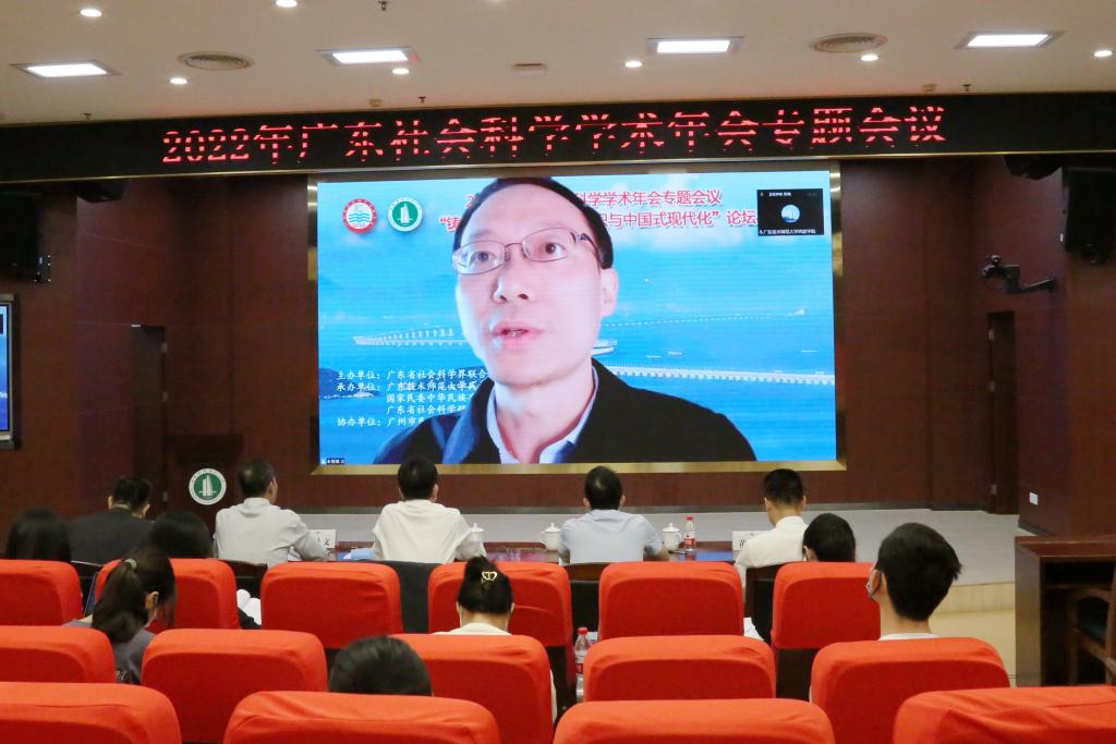 据悉,本次会议由广东省社会科学界联合会主办,广东技术师范大学承办,国家民委中华民族共同体华南及粤港澳大湾区研究基地、广东省社会科学研究基地广东技术师范大学中华民族共同体研究院、广东省政策咨询研究基地广东技术师范大学民族发展研究中心协办。本次会议采用线上与线下相结合的方式举办,在广东技术师范大学设线下主会场。我校黄秋文副校长,学校党办、科研处相关负责人以及民族学院师生代表出席会议。