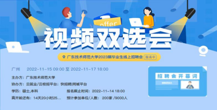架设就业“云端鹊桥”。我校进一步巩固书记校长访企拓岗促就业专项活动成果,积极与重点合作用人单位联系,深入挖掘招聘需求,通过“云直播”“云招聘”等方式为我校广大毕业生架设起就业的“云端鹊桥”,最大程度降低了近期疫情对毕业生就业带来的影响。自7月份启动了2023届毕业生招聘工作开始,截至11月12日,我校共举办线上线下宣讲会50余场,参加学生2500余人次,吸引了中国银行、欣旺达、视源股份、多益网络等优质企业来校招聘。自10月份疫情防控形势趋紧以来,根据省市及学校疫情防控工作安排,我校及时暂停线下校园招聘,并迅速与智联招聘、云校招和广州市高校毕业生就业指导中心联合组织开展“逐梦秋招 扬帆起航——广东技术师范大学2023届秋季空中双选会”“2022年下半年广州市“阳光就业”高校毕业生系列专场招聘活动”等线上招聘会,截至目前累计为2023届毕业生召开大型线上双选会6场,累计为毕业生提供2万余个就业岗位。