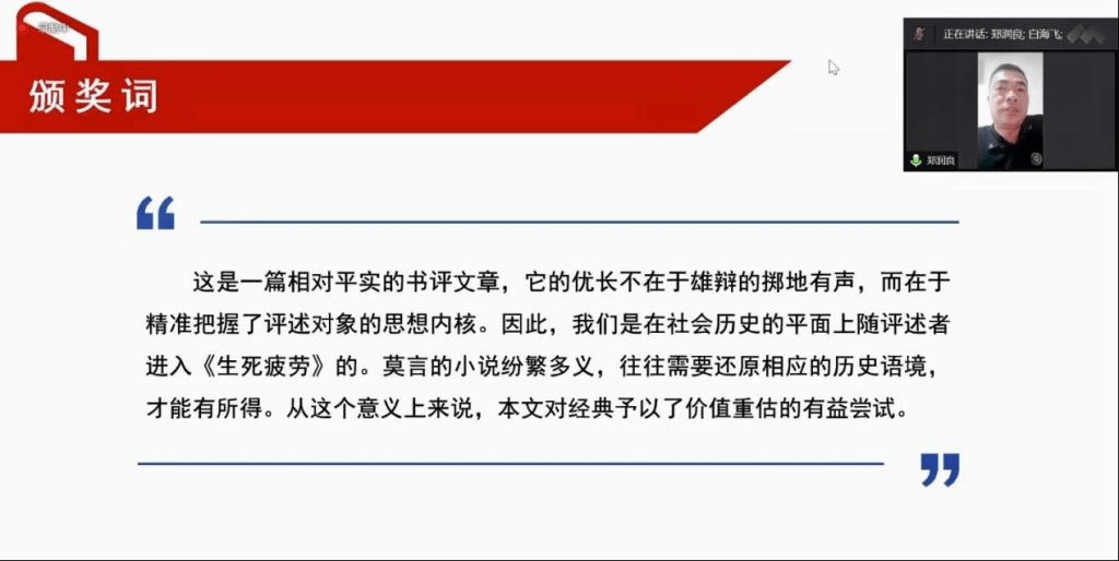 11月19日,由山西晋中信息学院主办,创意写作学院承办的首届“乌马河·中国大学生中文创意书评大赛”在晋中信息学院举行线上颁奖典礼。我校文学与传媒学院2020级中师卓越班唐萌同学的作品《怪诞活化的心灵秘史——评莫言<生死疲劳>》(指导老师:刘茉琳副教授)获全国三等奖。