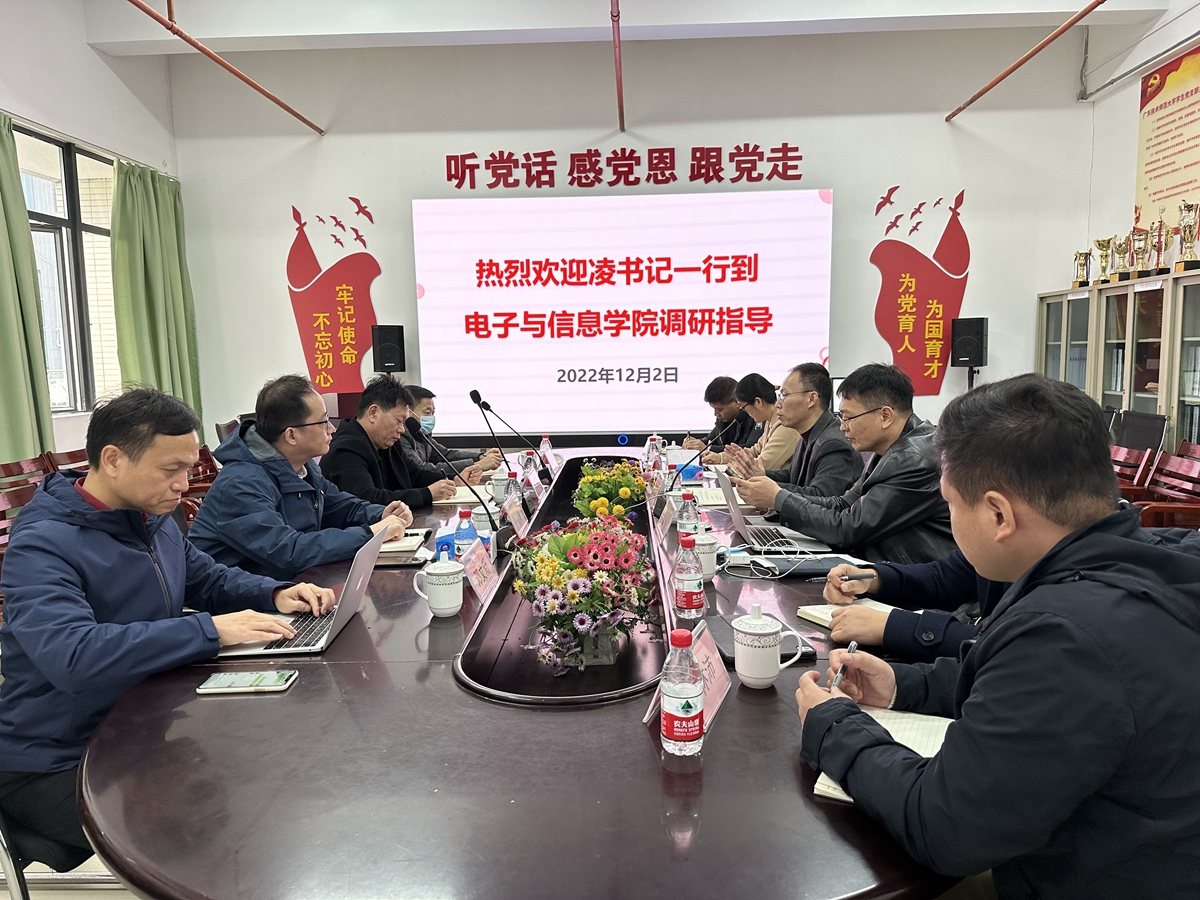 12月2日,学校党委书记凌靖波、副校长孙燕青带领党办和发展规划处相关负责同志到电子与信息学院调研指导工作,学院领导班子成员参加会议。