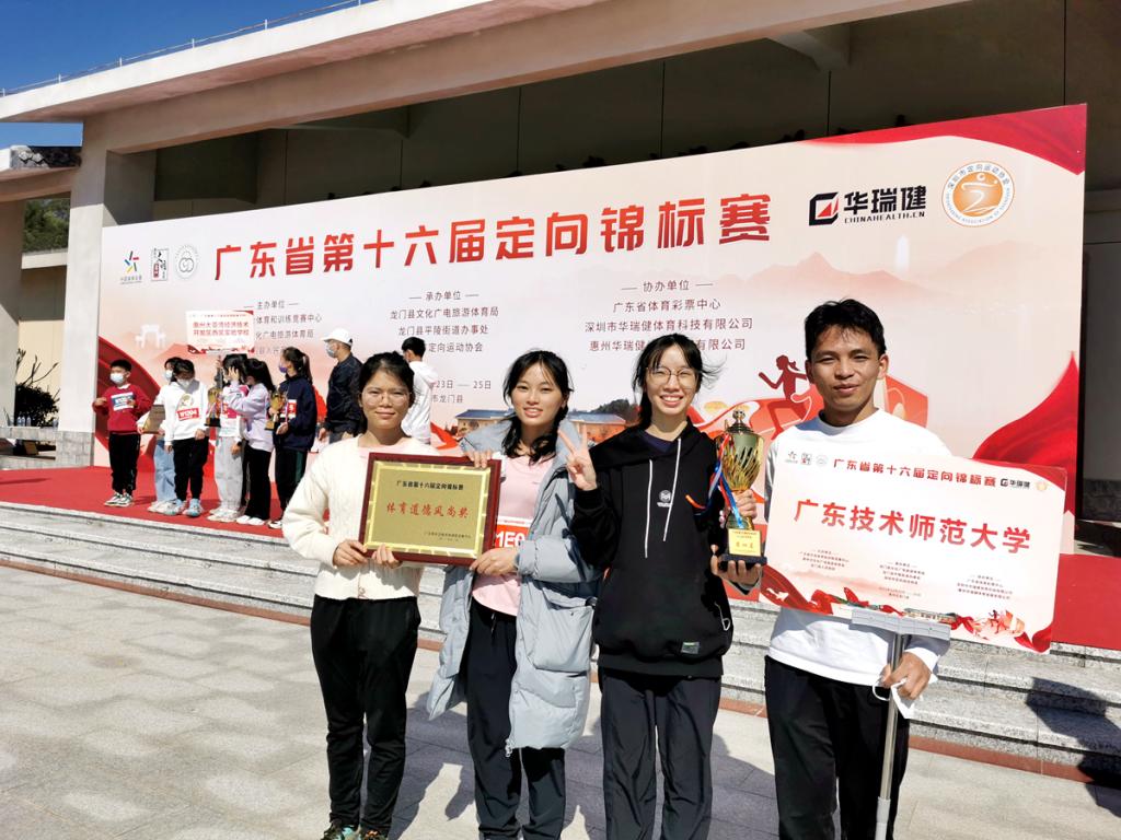 12月23-25日,广东省第十六届定向运动锦标赛在惠州市龙门县举行,本次比赛共设积分赛、短距离赛、中距离赛以及百米赛四个项目。我校派出4名运动员参加21岁精英组比赛,经过两天激烈争夺,获得女子积分赛第一名、女子短距离赛第三名、女子中距离赛第三名、女子百米定向第五名、女子团体第四名等奖项,并荣获“体育道德风尚奖”荣誉称号。