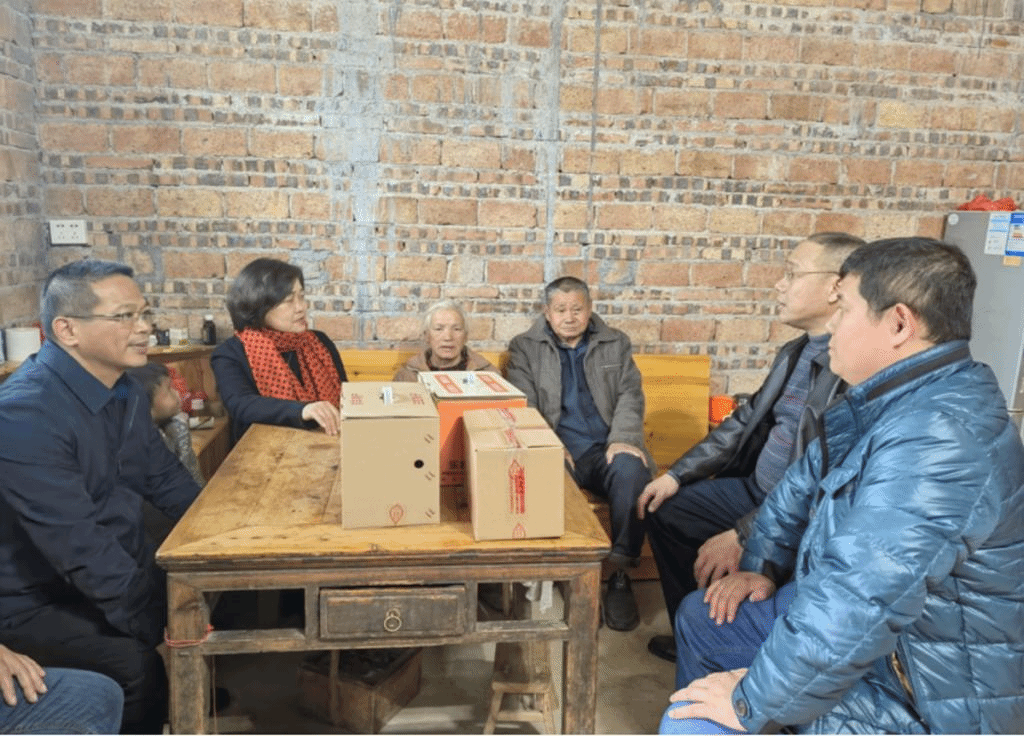座谈会后,戴青云校长一行在当地领导陪同下实地调研了坪石镇河丰村、管埠国立中山大学师范学院历史陈列馆、水果种植基地等,了解基层党建及新农村建设情况。随后,戴青云校长一行深入河丰村高龄党员、防止返贫监测户、学校派驻的驻镇帮镇扶村干部开展春节慰问活动,与他们面对面交谈,拉家常、聊近况、问冷暖,详细询问他们的身体状况、家庭生活情况,了解其日常生活中遇到的困难及所需、所想、所盼,听取他们的意见建议,致以新春的美好祝福并送上生活慰问品。