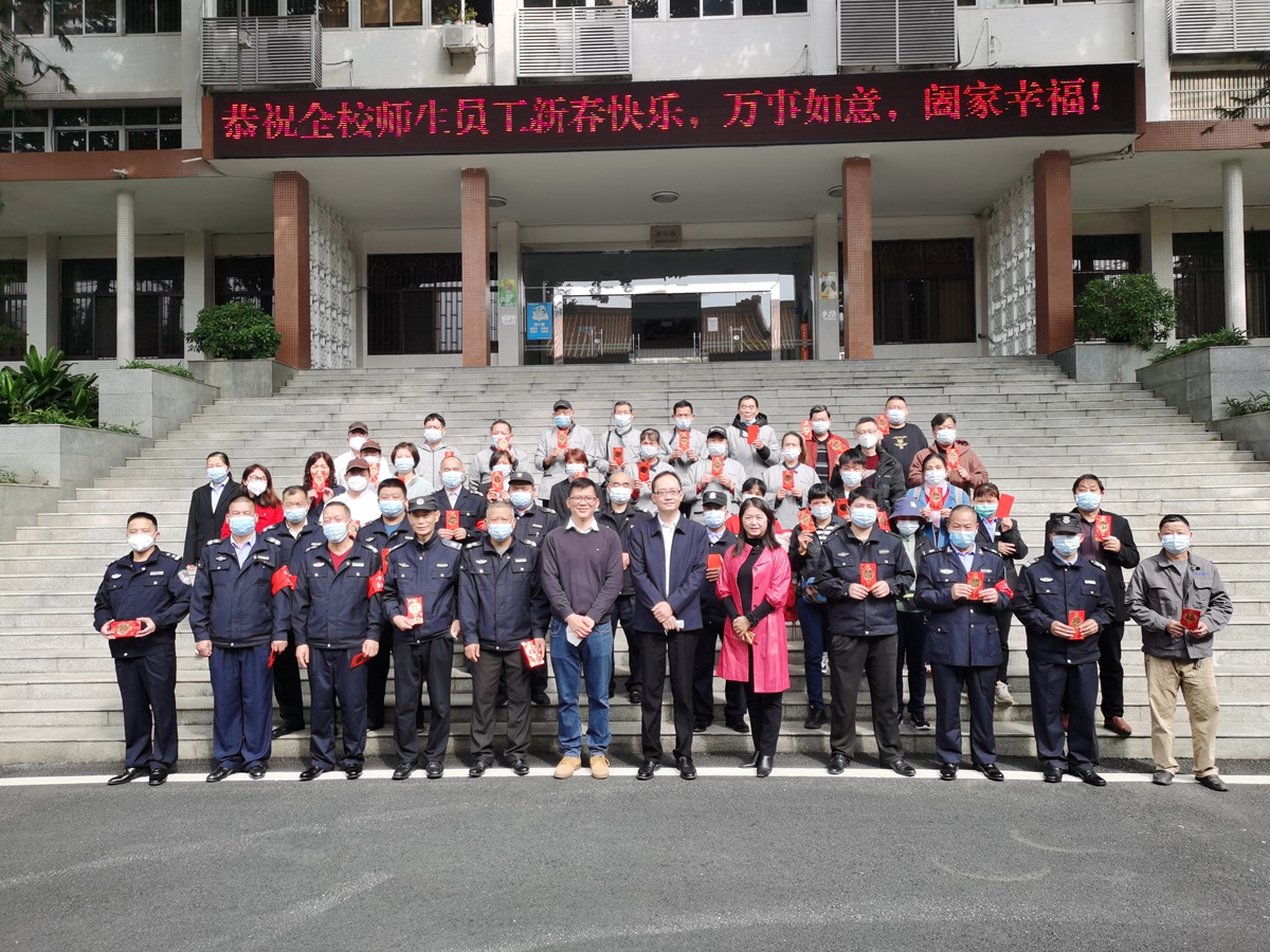 金虎辞旧岁,玉兔迎新春。在这辞旧迎新的美好时刻,受学校党委书记凌靖波、校长戴青云委托,学校党委副书记李向明、副校长孙燕青代表学校于大年三十与年初一分别前往河源校区和广州四校区看望慰问春节假期留校值守人员,并为坚守岗位的一线教职工带来学校的关怀和温暖,为他们送上新春的祝福和问候。安全保卫处、后勤处、河源校区管委会等相关部门负责同志参加。