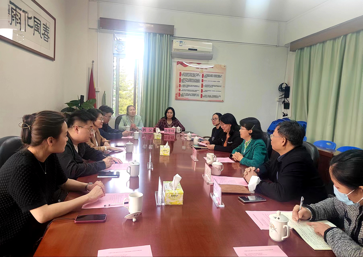 许玲代表学校对冯婧一副主任一行的来访表示热烈欢迎,感谢中国外文局对学校的关注与支持,并就学校历史沿革、办学规模、学科专业特色、人才培养等进行了详细介绍。许玲着重介绍了我校近年来在职业教育研究领域所取得的成绩,结合我校的学科优势和地域特征,从翻译人才如何推进职业教育高质量发展角度,提出不仅要把国外优秀的职业教育理论专著“引进来”,更要推动有中国特色的职业教育理论“走出去”,在语言和翻译技能的基础上凸显职业教育特色、进行内涵式构建,以生动、准确的语言向世界讲好中国故事。希望双方在图书出版、培训项目、课题研究等方面加强合作交流,深入推进我校翻译硕士点(MIT)建设,不断提高应用型外语人才培养质量。