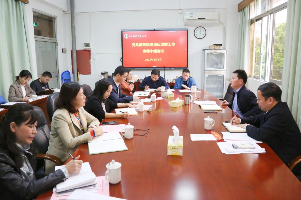 3月3日,学校召开党风廉政建设和反腐败工作协调小组工作会议,学校党委书记凌靖波主持会议并讲话。党委办公室、校长办公室、纪检监察室、党委组织部、党委宣传部、人事处、财务处、审计处、党委巡察工作办公室等成员单位负责人及专职纪检监察干部参加会议。