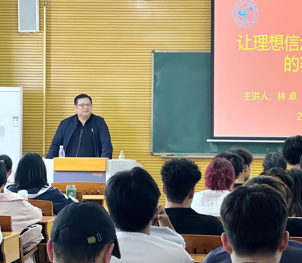 在报告中,林卓阐明了理想信念的概念,结合自身经历与同学们共同探讨了理想信念对人生发展的重要性,重点解读了新形势下党和国家的民族方针政策。他表示,习近平总书记在党的二十大报告中指出“当代中国青年生逢其时,施展才干的舞台无比广阔,实现梦想的前景无比光明”,殷切寄语广大青年“立志做有理想、敢担当、能吃苦、肯奋斗的新时代好青年”。