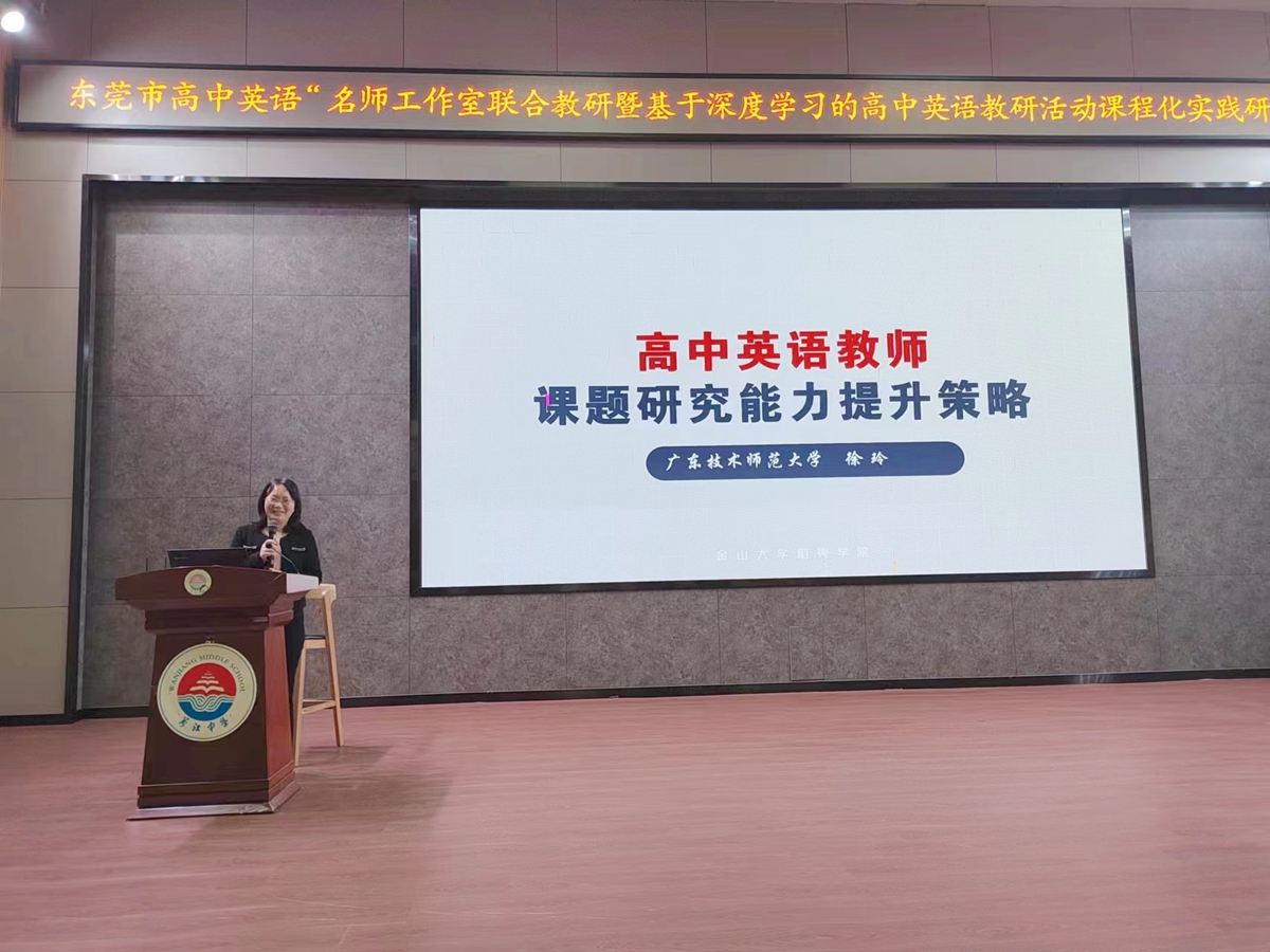 3月15日,外国语学院院长徐玲教授受邀出席东莞市高中英语“名师工作室联合教研暨基于深度学习的高中英语教研活动课程化实践研究”专题研讨活动。