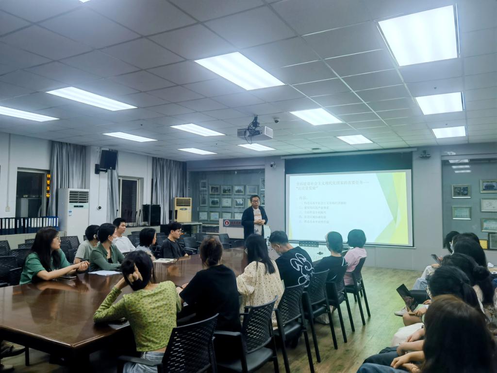 学院院长刘子川以《加快构建新发展格局,着力推进高质量发展》为题,为美术学院全体研究生讲授了“思政第一课”。他首先立足党的二十大报告从九个方面详细阐述构建新发展格局和高质量发展的内涵与外延,结合学校和学院的办学特色定位,详细分析研究生在读期间遇到的学业、生活、工作方面的问题,最后鼓励美院研究生要多读书、读好书,怀抱梦想又脚踏实地,将个人的理想追求融入国家、省和学校的发展大局中。