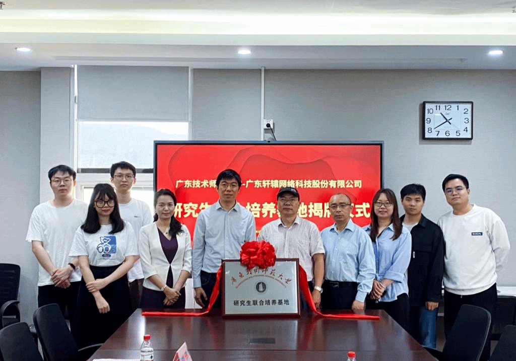 3月23日,研究生院副院长刘卫东、广东省知识产权大数据重点实验室副主任雷方元等一行8人赴广东轩辕网络科技股份有限公司举行电子信息硕士研究生联合培养基地揭牌仪式。在双方推动下,为落实强化实践教学环节,加强实践基地建设,提高实践教学质量,双方秉持“优势互补、互利共赢、协同发展”的原则,在高层次人才培养方面开展合作,共同建立“广东技术师范大学—广东轩辕网络科技股份有限公司电子信息专业学位研究生联合培养实践基地”并开展相关联合培养工作。广东轩辕网络科技股份有限公司副总裁黄永健、轩辕研究院副院长余雪梅及相关实践指导老师参加了揭牌仪式。