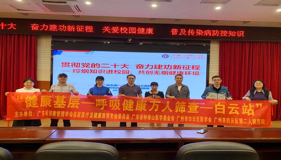 为深入学习贯彻习近平总书记关于加快推进健康中国建设的重要论述精神,切实有效做好校园春季传染病防控工作,引导广大师生牢固树立“每个人是自己健康的第一责任人”理念,3月22日,校医室邀请白云区第二人民医院副主任医师刘淑军、副主任医师萧鲲来到我校白云校区,为师生开展题为“贯彻党的二十大 奋力建功新征程 关爱校园健康 普及传染病防控知识”校园健康讲座,各学院师生代表共两百多人到场听讲。