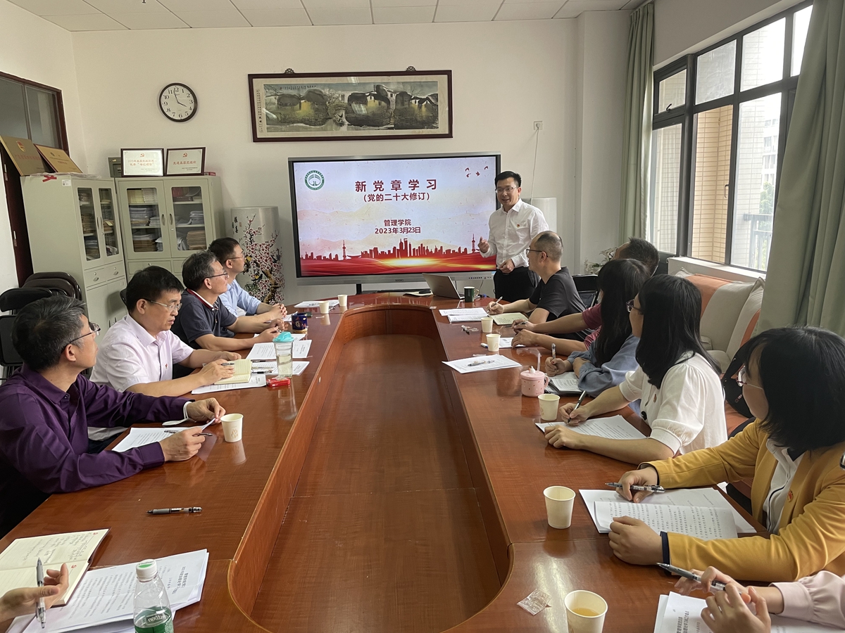 为深入学习贯彻党的二十大精神,加深对新党章的理解,引导广大党员深刻领会党章修正案的重大意义和深远影响,3月23日下午,管理学院在白云校区一教402室召开会议,专题学习党的二十大新修订通过的《中国共产党章程》。学院党委委员、专职组织员和全体党支部书记参加了会议,会议由学院党委书记陈军主持。
