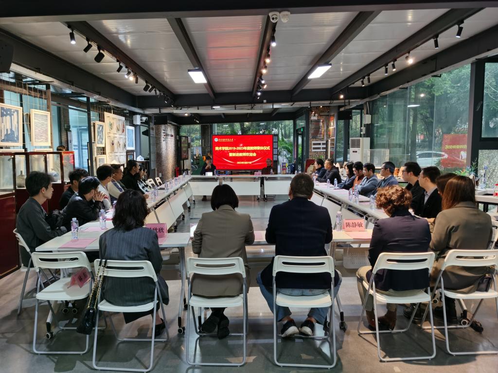 为进一步加强师德师风建设,加强学院对退休教师及新入职教师的关怀,3月31日,美术学院在东校区非物质文化遗产·大师工坊举行退休教师荣休仪式暨新进教师欢迎会,美术学院院长刘子川、党委副书记王明粤、副院长陈静敏、各系(中心)主任、教职工代表等参加了会议,会议由王明粤主持。