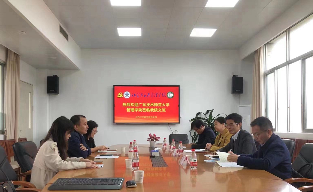 涂斌对广东技术师范大学管理学院的到访表示热烈的欢迎,并详细介绍了广东外语外贸大学社会与公共管理学院的发展历程以及国家一流本科专业行政管理专业的课程设置、学科竞赛、国际交流、招生就业等方面的情况。